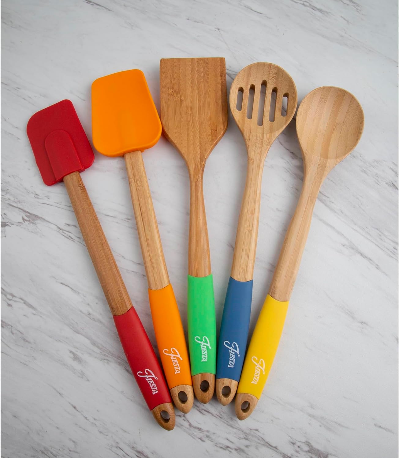 Cambridge Fiesta Bamboo 5-Piece Silicone Utensil Set