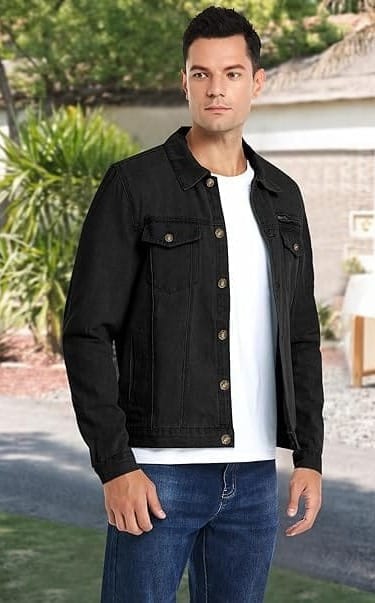 The men's black denim jacket is a versatile and stylish addition to any wardrobe. With the right fit and style, it can be dressed up or down for any occasion. With options for every size and budget and the convenience of same-day delivery, there's no reason not to add this classic piece to your collection., and the convenience of same day delivery, there's no reason not to add this classic piece to your collection.