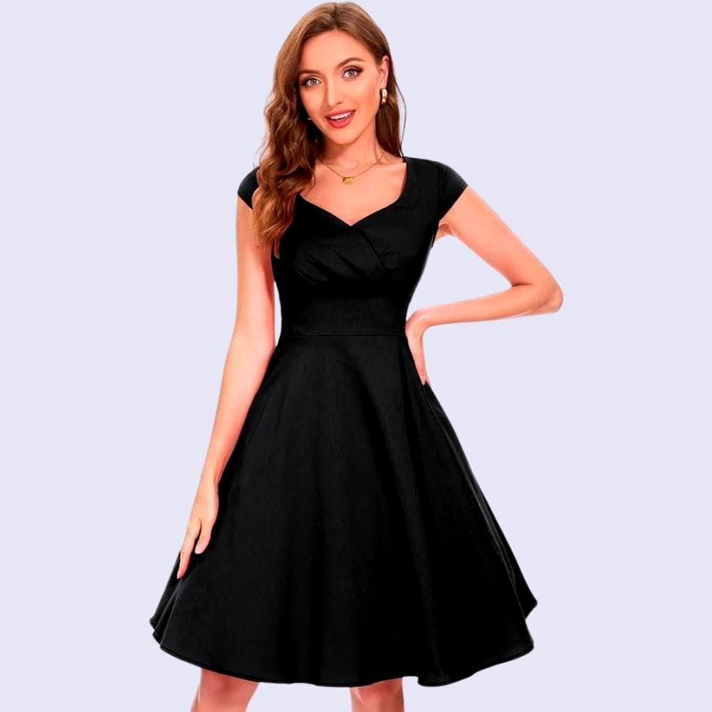 The Bbonlinedress Retro Short Swing Dress is the perfect classic and stylish statement piece for any occasion. With its A-line style and sweetheart neckline, this dress exudes elegance and sophistication. The cap sleeves add a touch of femininity, while the back zipper closure allows for easy and convenient wearing. Made from 98% cotton and 2% spandex, this dress is comfortable to wear and durable and long-lasting.